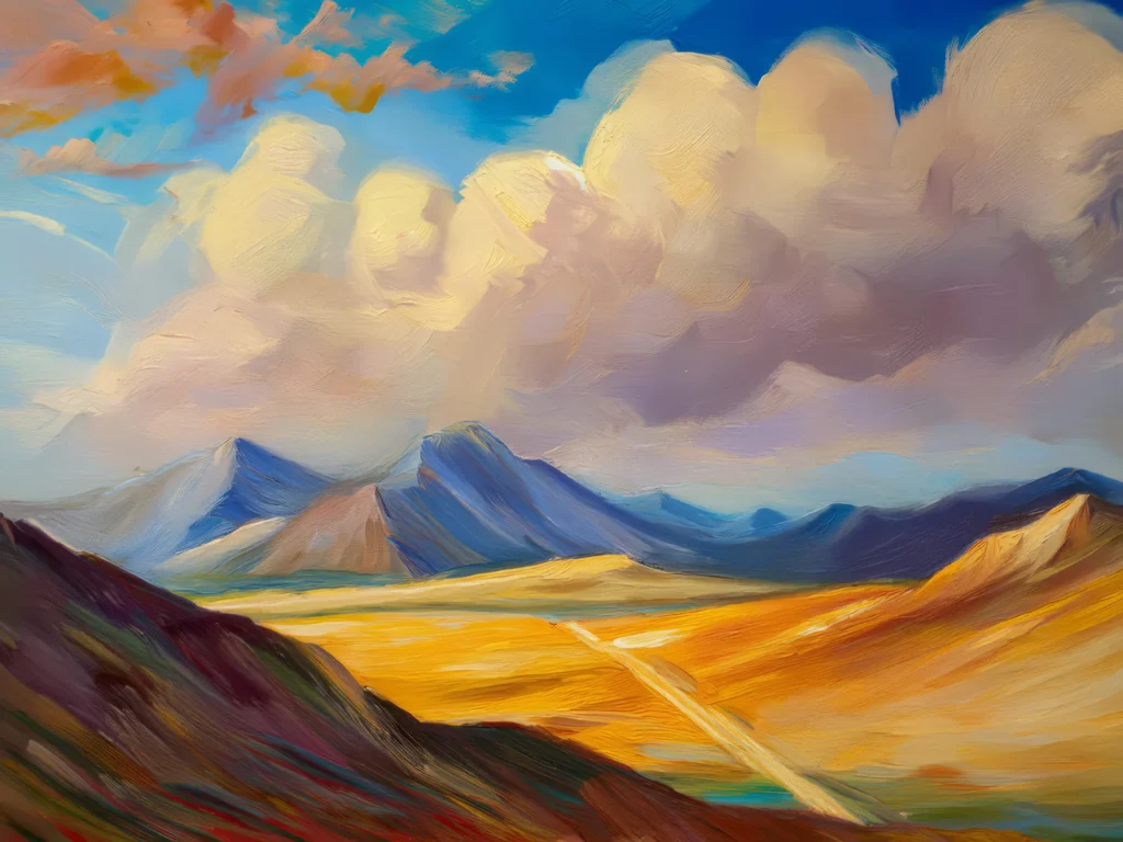 A tranquil lake perfectly reflecting the surrounding landscape and sky, creating a mirror-like effect.