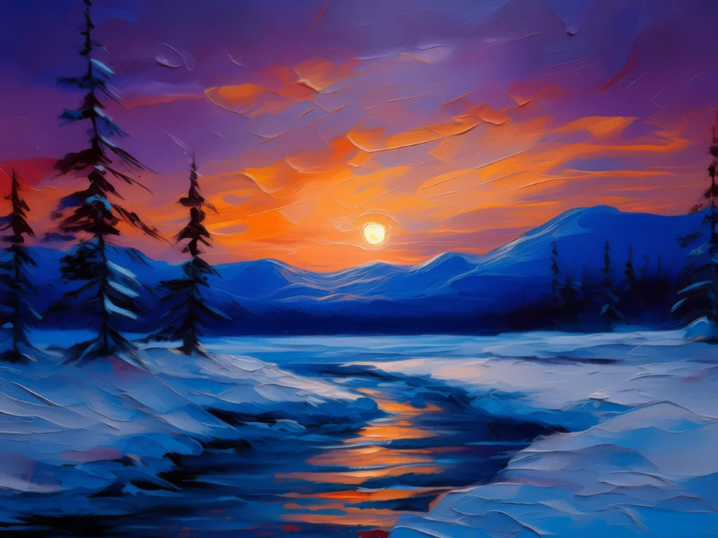 Dusk falls over a boreal desert, casting a cold embrace across the landscape.