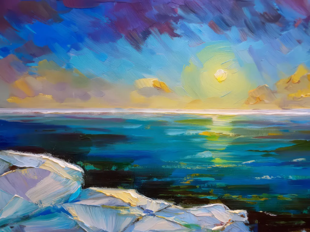 A secluded beach at sunrise, with gentle waves lapping the shore, soft sand underfoot, and the sky painted in pastel hues