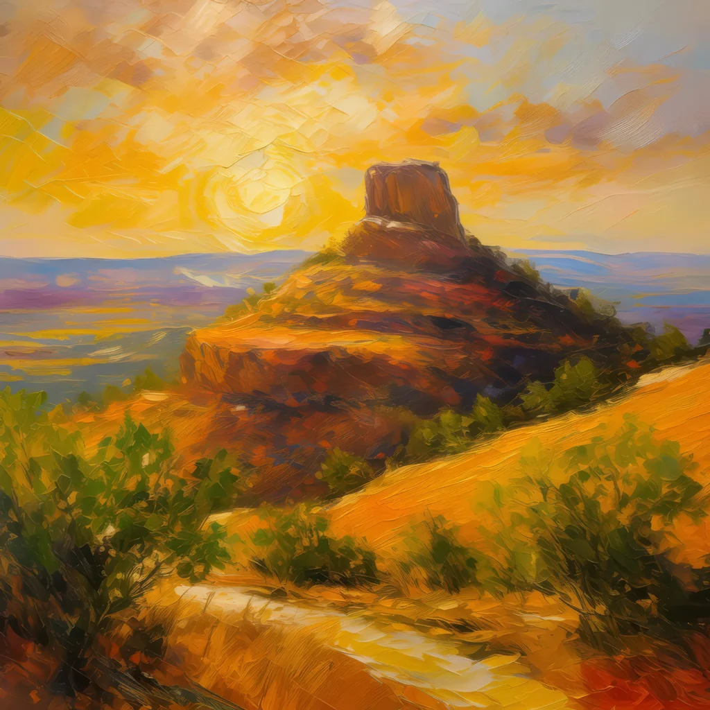 A mesa bathed in the warm golden light of the setting sun.