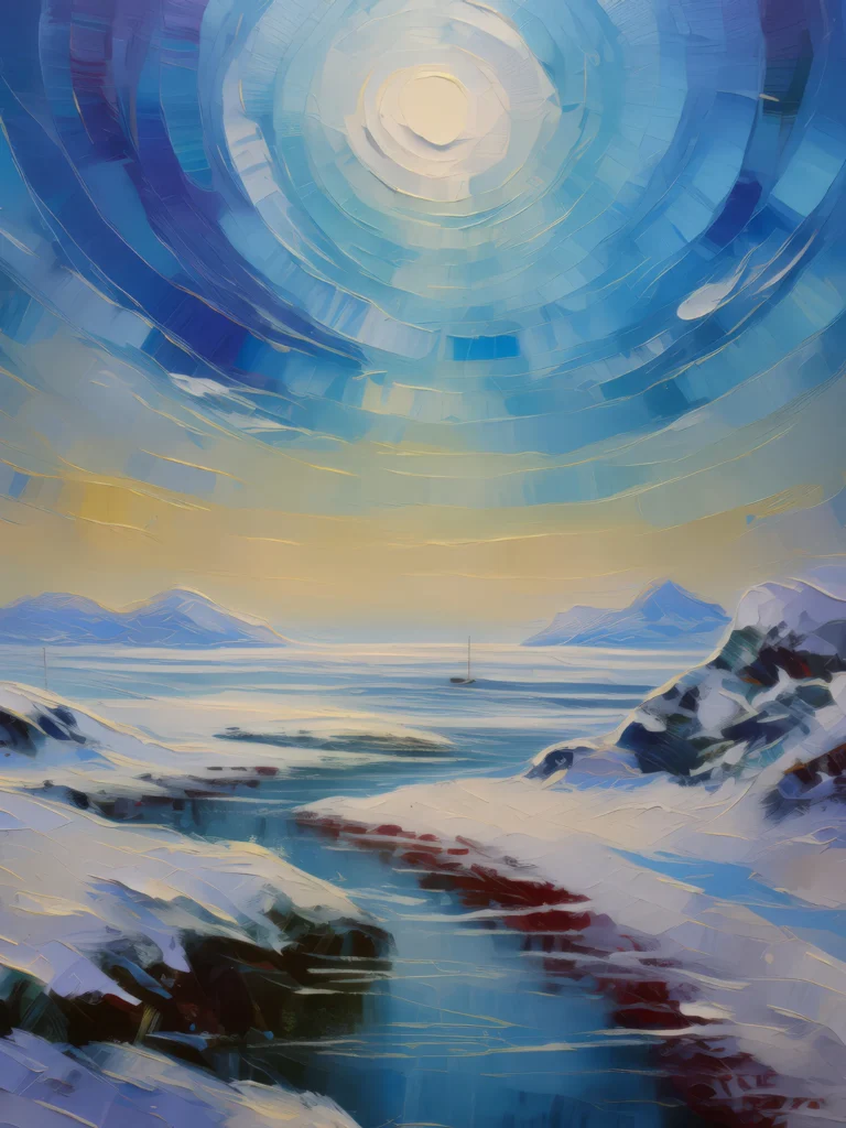 A mirage over the icy landscape of a desolate polar desert.