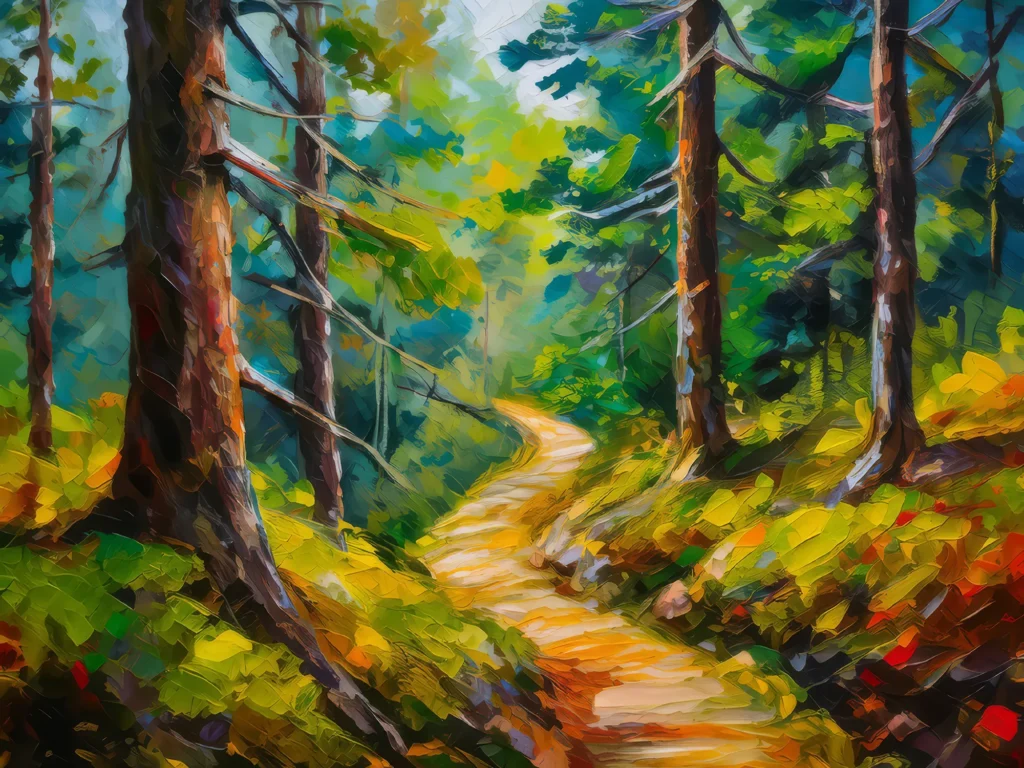 A winding trail through a dense forest, perfect for an adventurous hike.