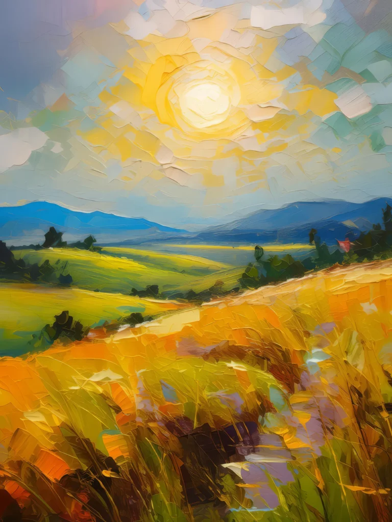 Bright sun illuminating a vast grassland at noon, creating deep shadows.