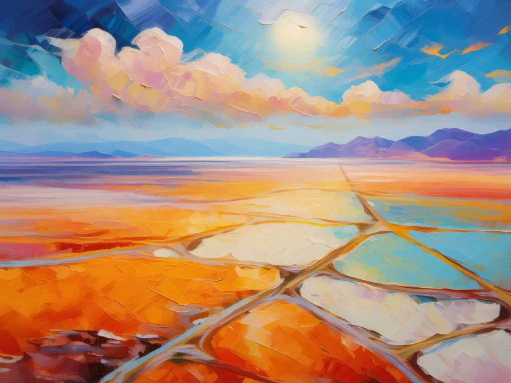Expansive salt flats cover the area where the ocean once met the desert, shimmering under the hot sun.