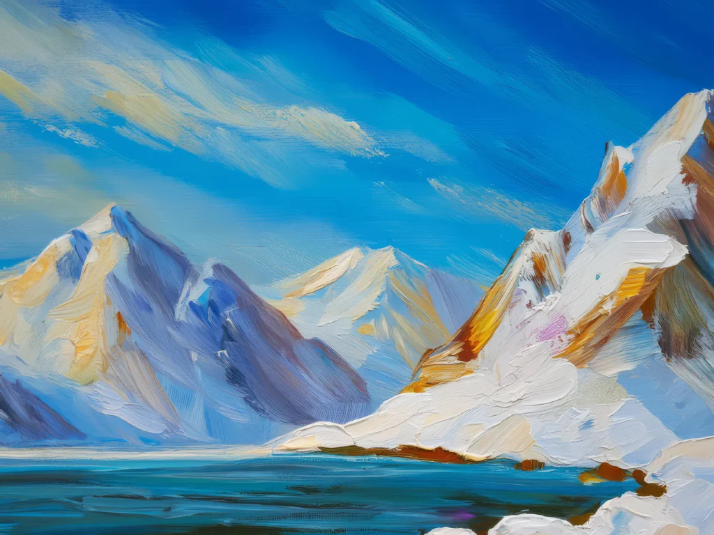 Mountains in the Arctic lightly dusted with snow, with a backdrop of a clear blue sky.