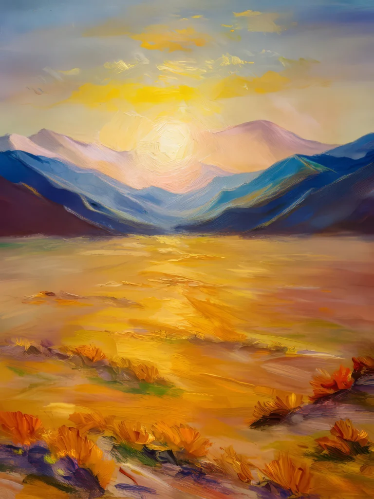 Colorful wildflowers in bloom across a vast alpine meadow, with towering mountains in the background.