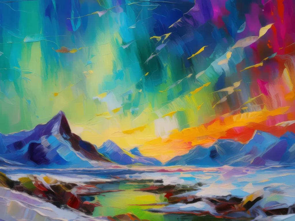 Colorful aurora borealis dancing over the arctic desert, a spectacle of nature’s beauty.