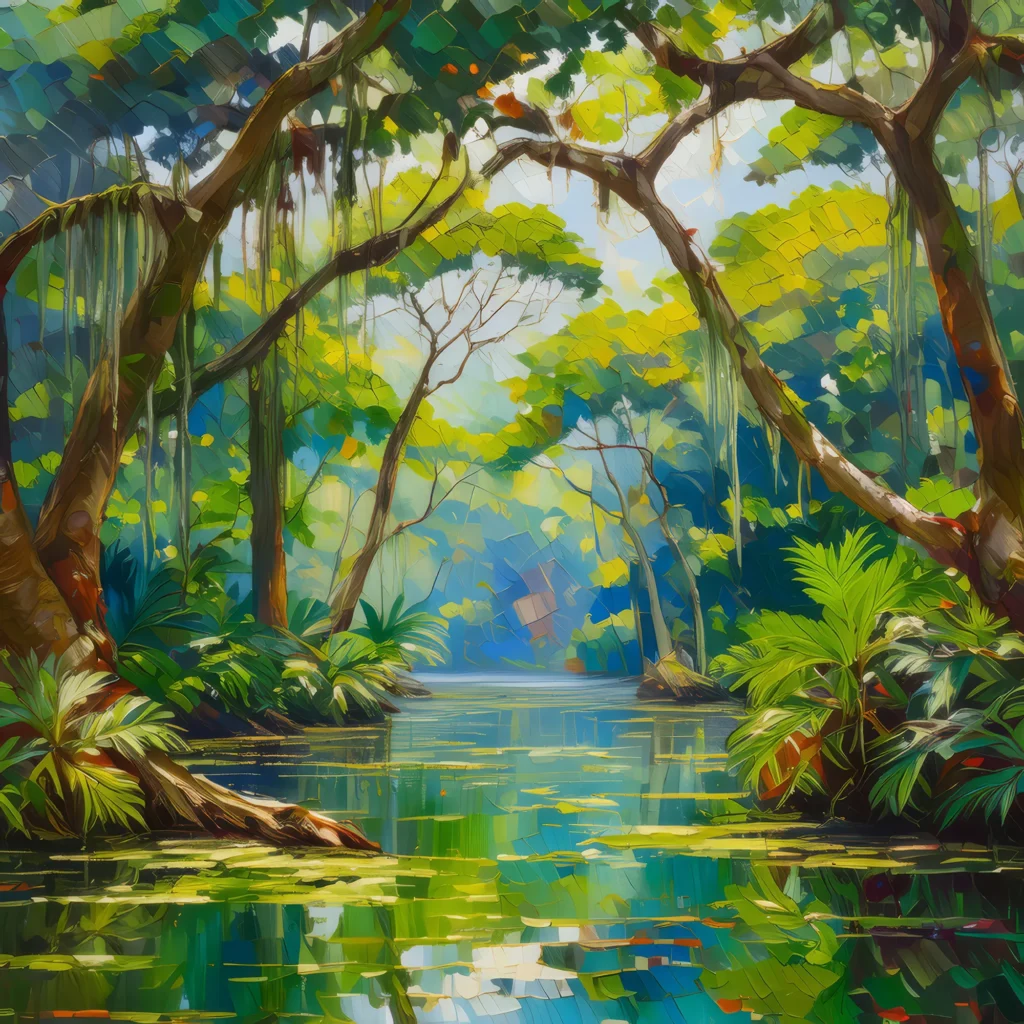 An island with a stunning waterfall, crystal-clear pool, and lush greenery.