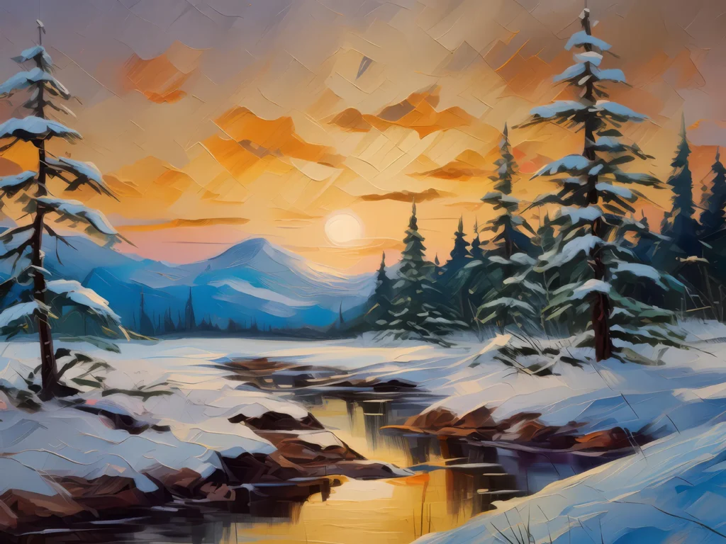 The serene stillness of a boreal desert captured on a cold winter’s evening.