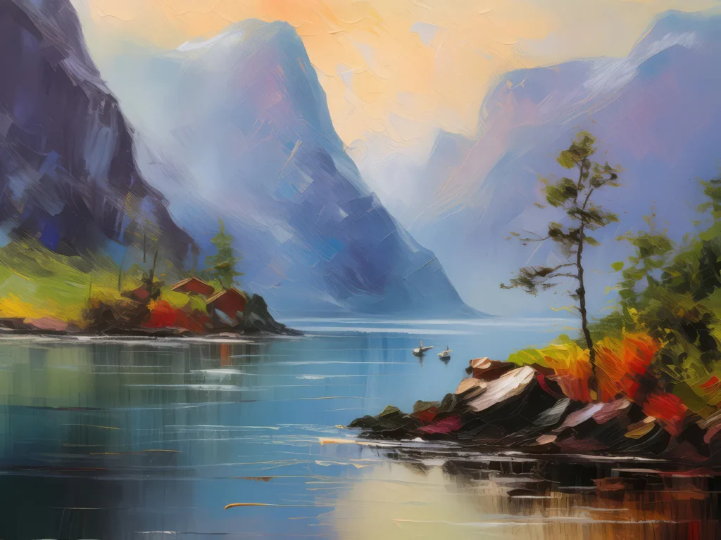 Morning mist hugs the fjord, softening the rugged landscape and adding a layer of mystery to the early hours.