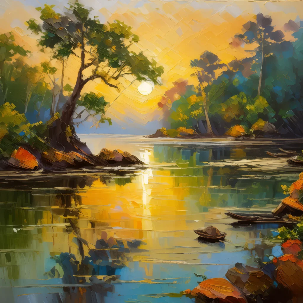 An early morning in a sleepy fishing village, with boats gently bobbing in the harbor as the sun rises, casting a soft light on quaint cottages