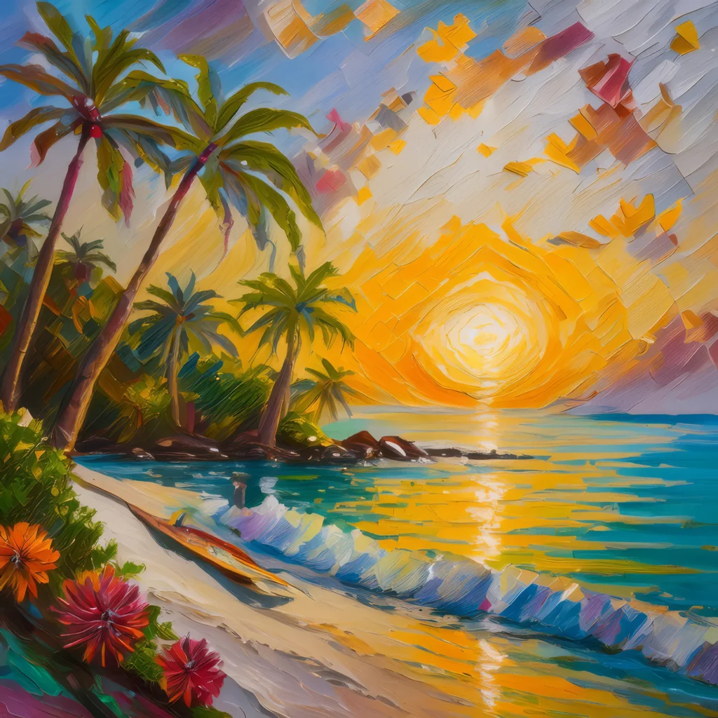 Morning yoga session on an atoll’s beach as the sun rises over the ocean.