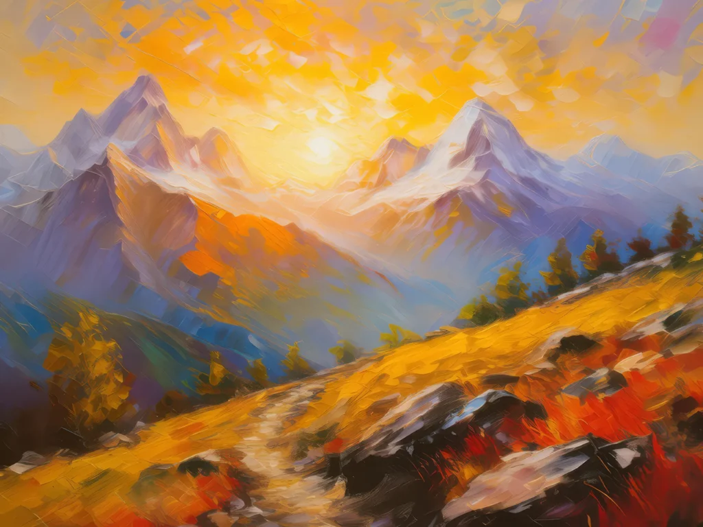 Autumn colors explode in an alpine desert, contrasting sharply with the sparse greenery.