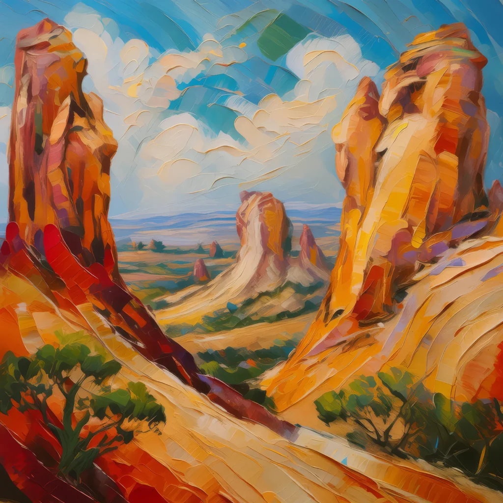 Intricate sandstone formations rise from a remote plateau, shaped by eons of erosion.