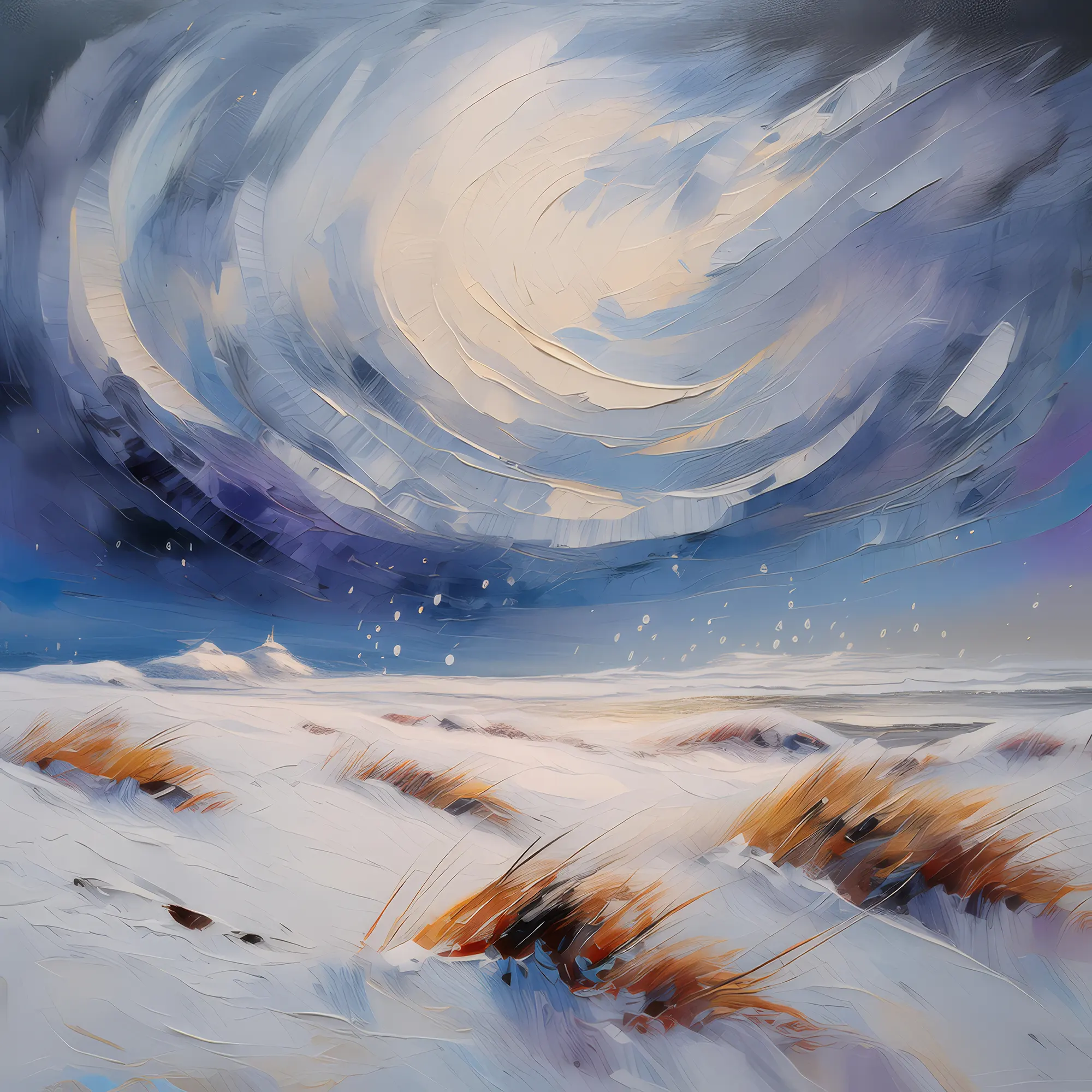 A fierce blizzard sweeping across the arctic desert, obscuring vision and transforming the landscape into a whiteout.