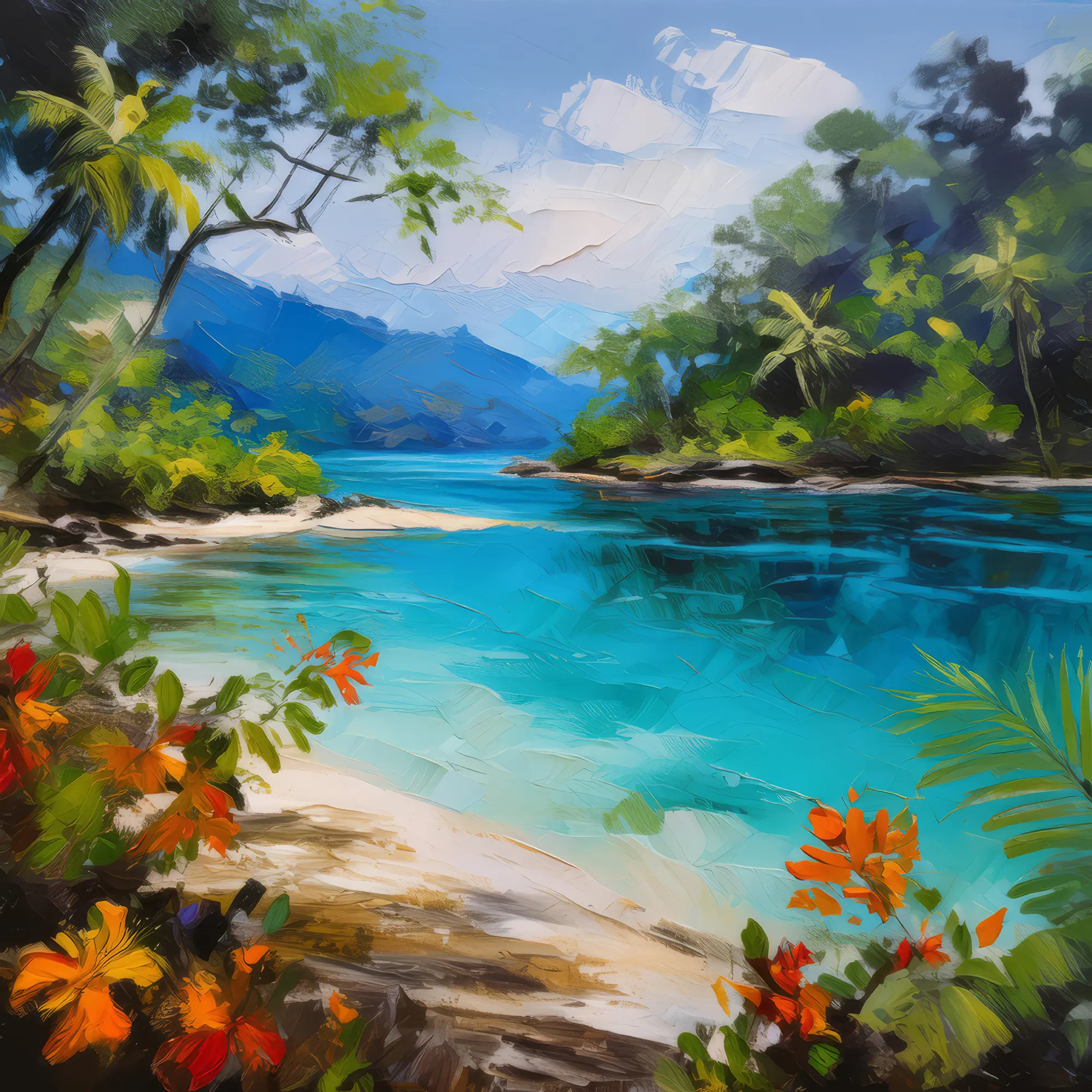 Blue Lagoon with FoliageBy Emma Mickelberg / September 3, 2020 A blue lagoon with clear waters surrounded by lush tropical foliage and white sand. Painted in 2004. View ‘Blue Lagoon with Foliage’ on Society6