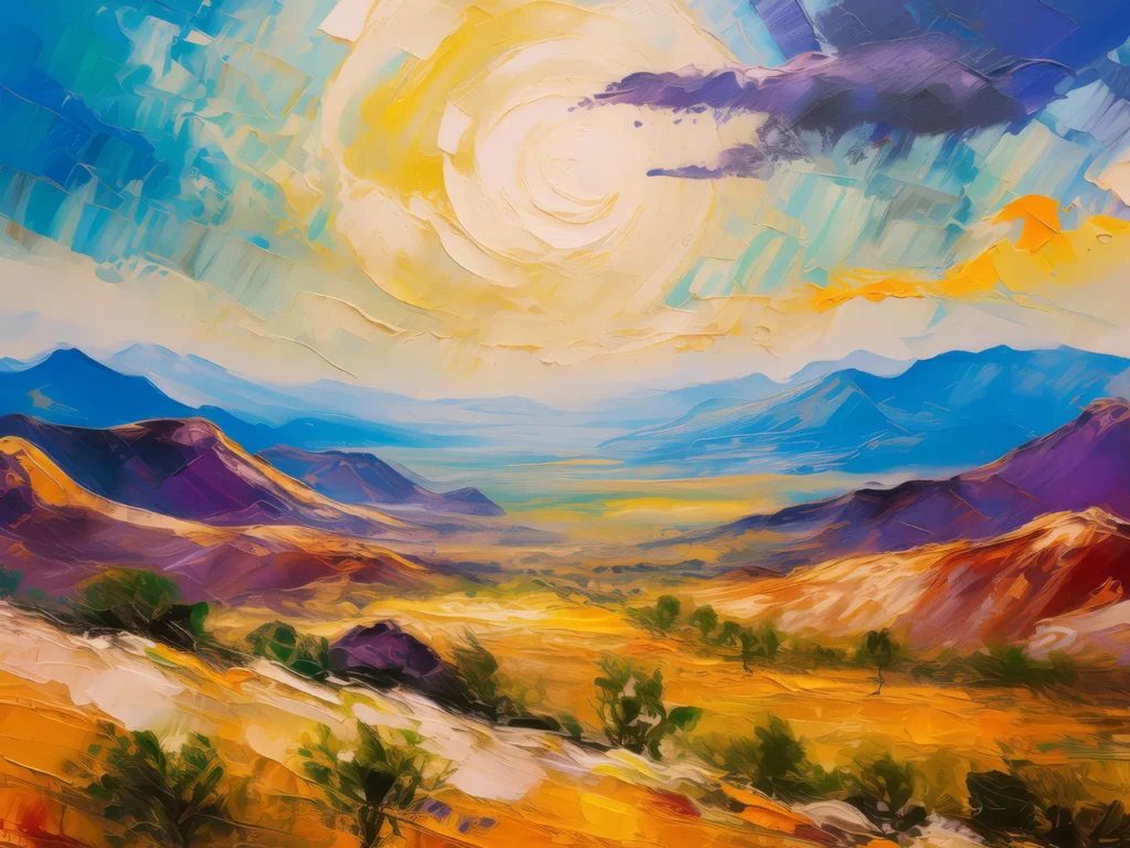 A shimmering mirage appears over the desert mountains under the hot midday sun.