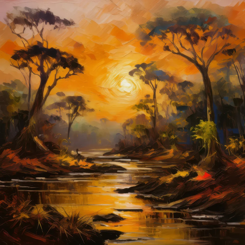 The tropical dry forest bathed in the warm hues of a setting sun, creating a serene atmosphere.