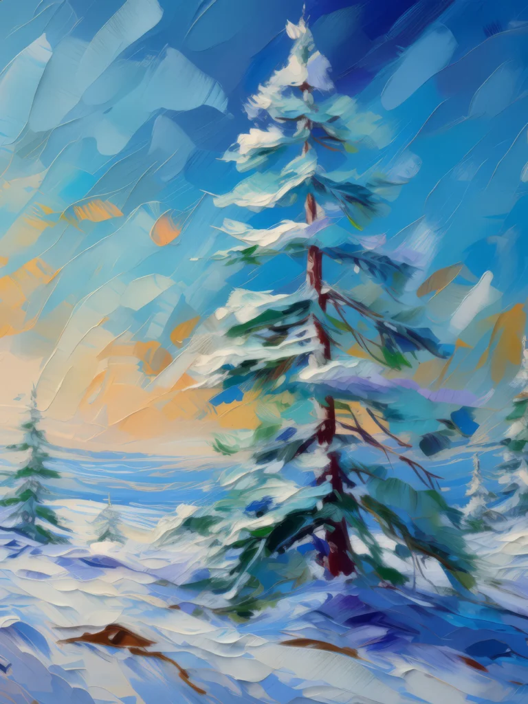 Snow-laden pine trees stand resilient against the harsh winds of the polar tundra, a testament to survival.