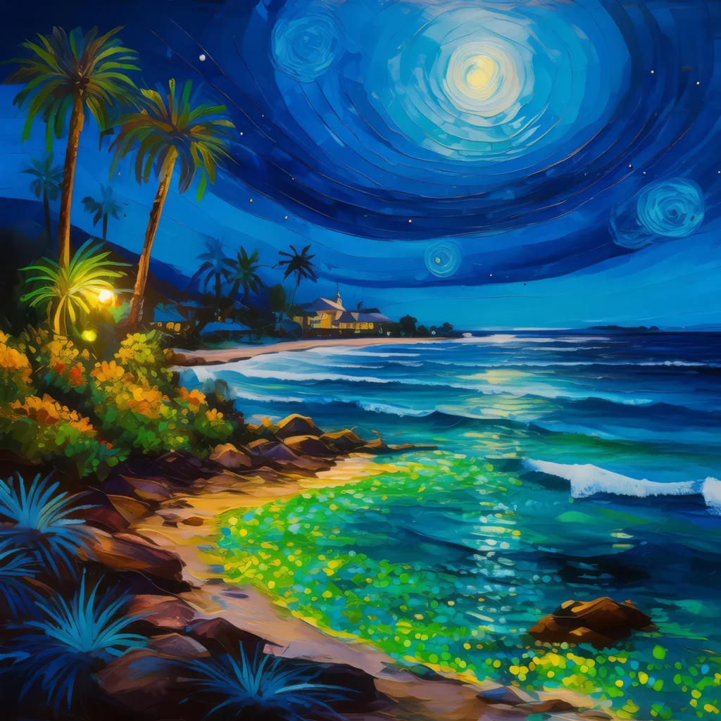 Bioluminescent algae light up the shoreline where the desert sea meets the ocean at night.