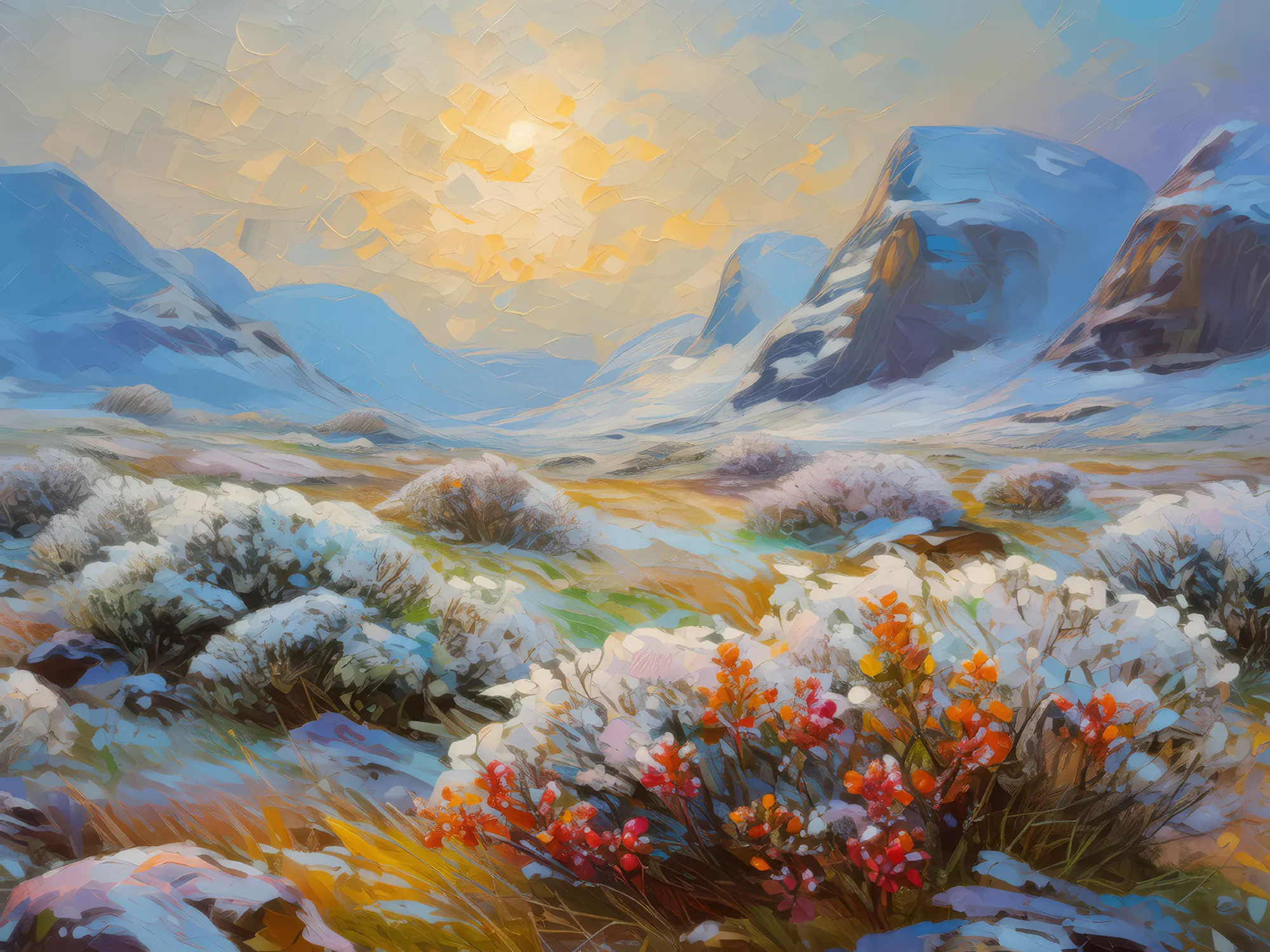 Quiet Tundra MorningBy Emma Mickelberg / November 1, 2020 A quiet tundra morning, with a thin layer of frost covering the low shrubs and rocks. Painted in 2018. View ‘Quiet Tundra Morning’ on Society6