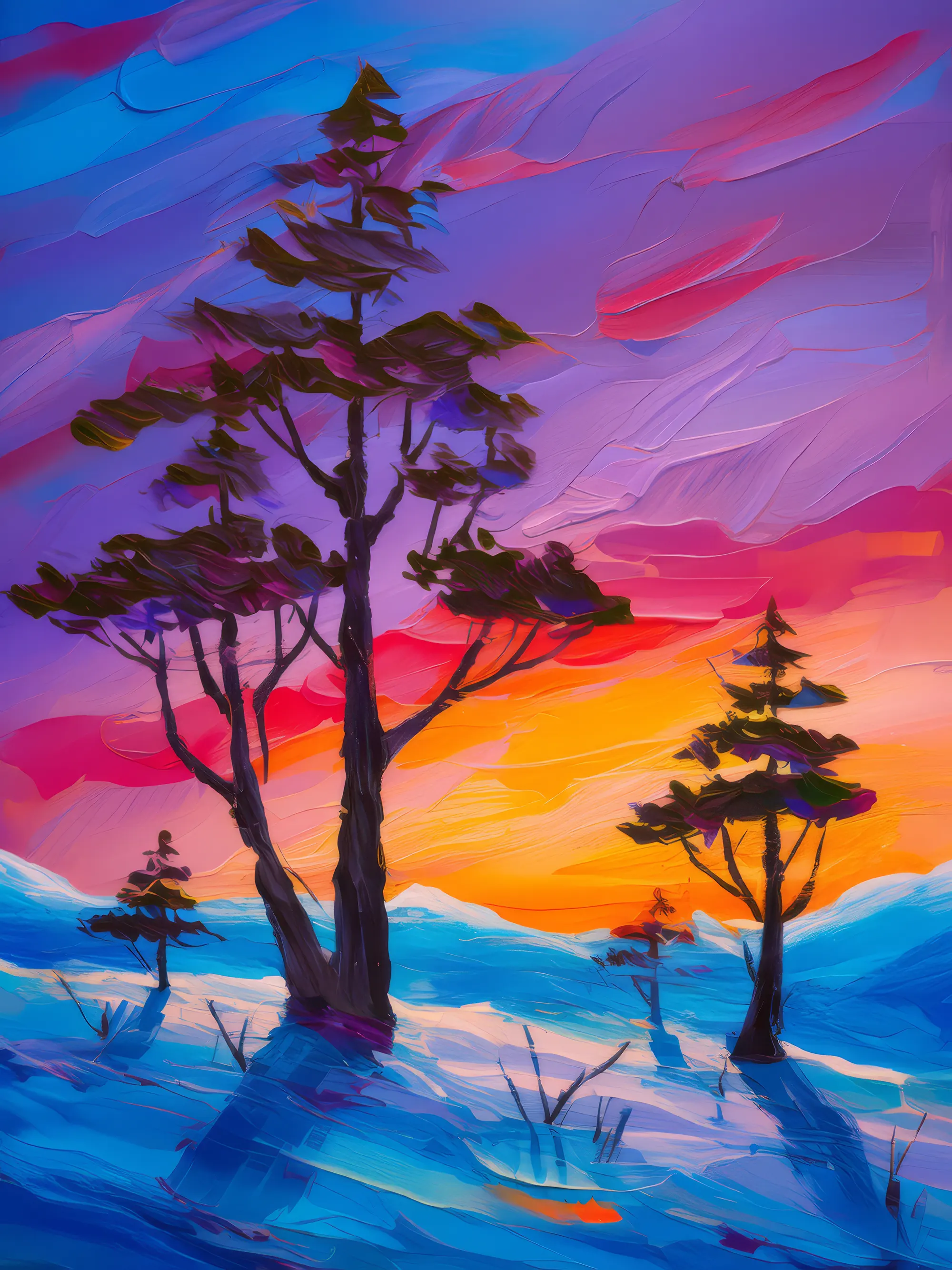 Silhouettes Against Arctic SkyBy Emma Mickelberg / August 22, 2020 Silhouettes of sparse trees against the vibrant twilight sky in the arctic desert. Painted in 2016. View ‘Silhouettes Against Arctic Sky’ on Society6