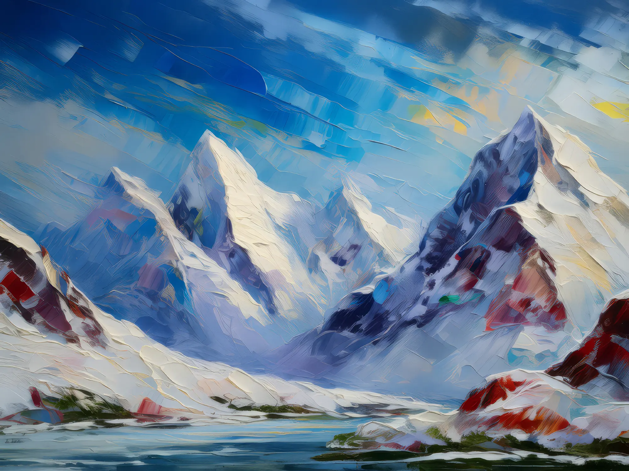 Snow-Covered MountainsBy Emma Mickelberg / July 27, 2020 Towering snow-covered mountains under a clear sky in the polar region. Painted in 2009. View ‘Snow-Covered Mountains’ on Society6