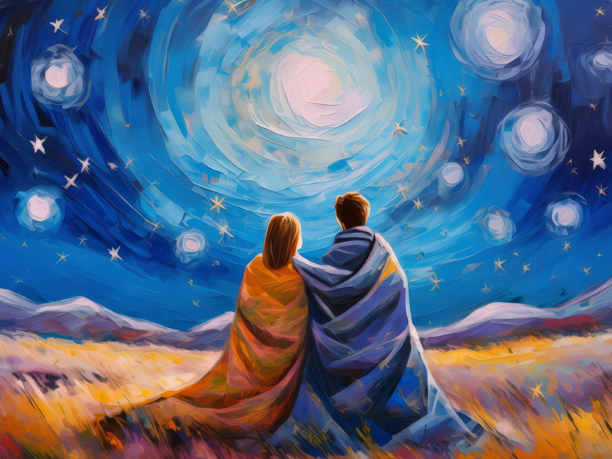 Stargazing in the TundraBy Emma Mickelberg / August 19, 2020 A couple stargazing in the tundra, wrapped in blankets against the cold, clear night. Painted in 2017. View ‘Stargazing in the Tundra’ on Society6
