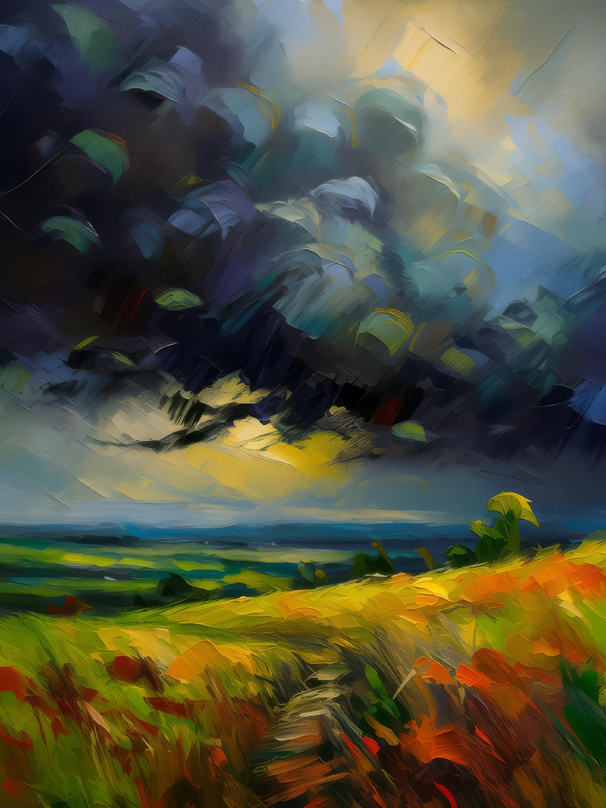 Storm Approaching GrasslandBy Emma Mickelberg / April 3, 2025 Dark storm clouds approaching a grassland, dramatically changing the atmosphere. Painted in 2000. View ‘Storm Approaching Grassland’ on Society6