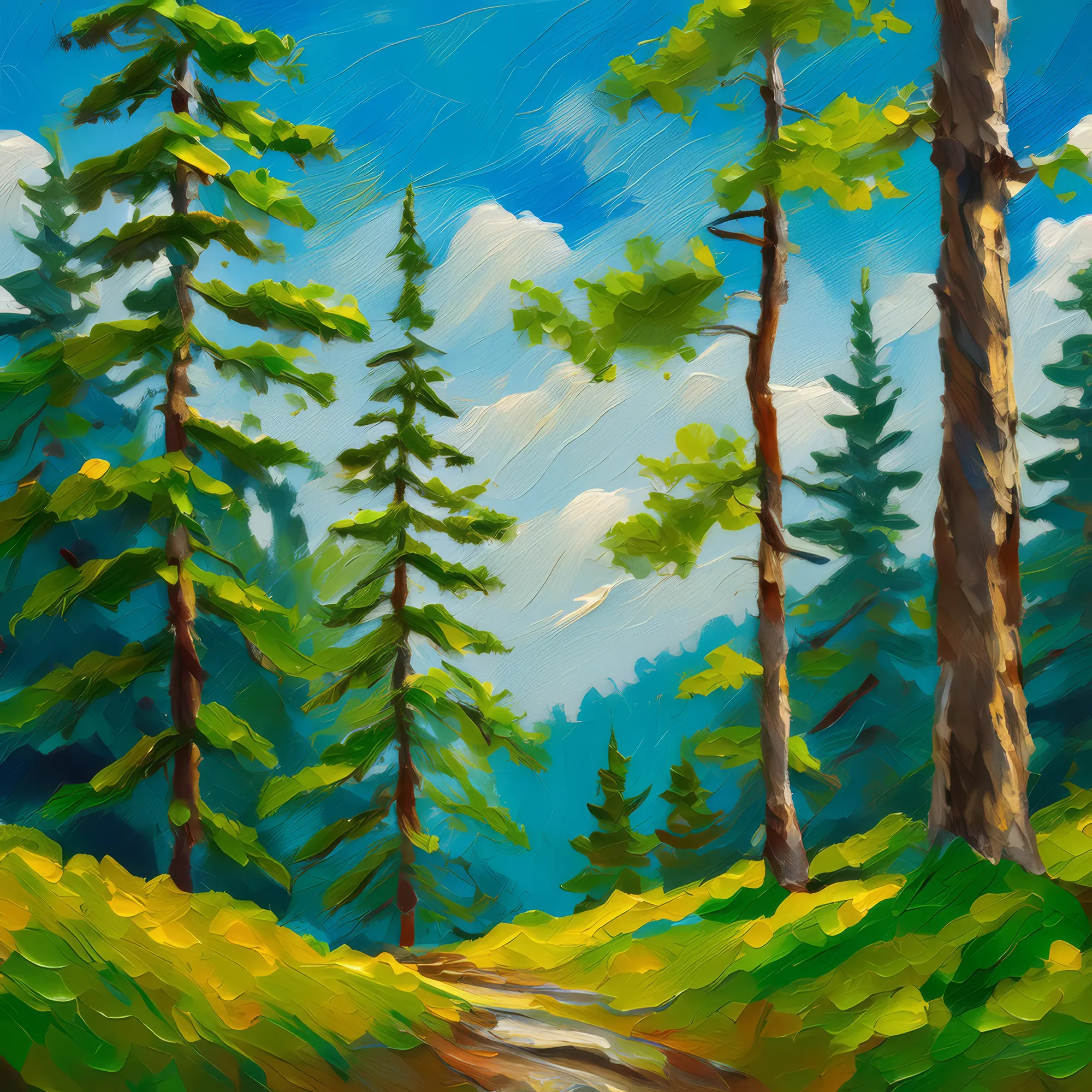 Summer Boreal TranquilityBy Emma Mickelberg / April 2, 2025 A peaceful boreal forest in summer with lush green trees and a clear blue sky. Painted in 2011. View ‘Summer Boreal Tranquility’ on Society6