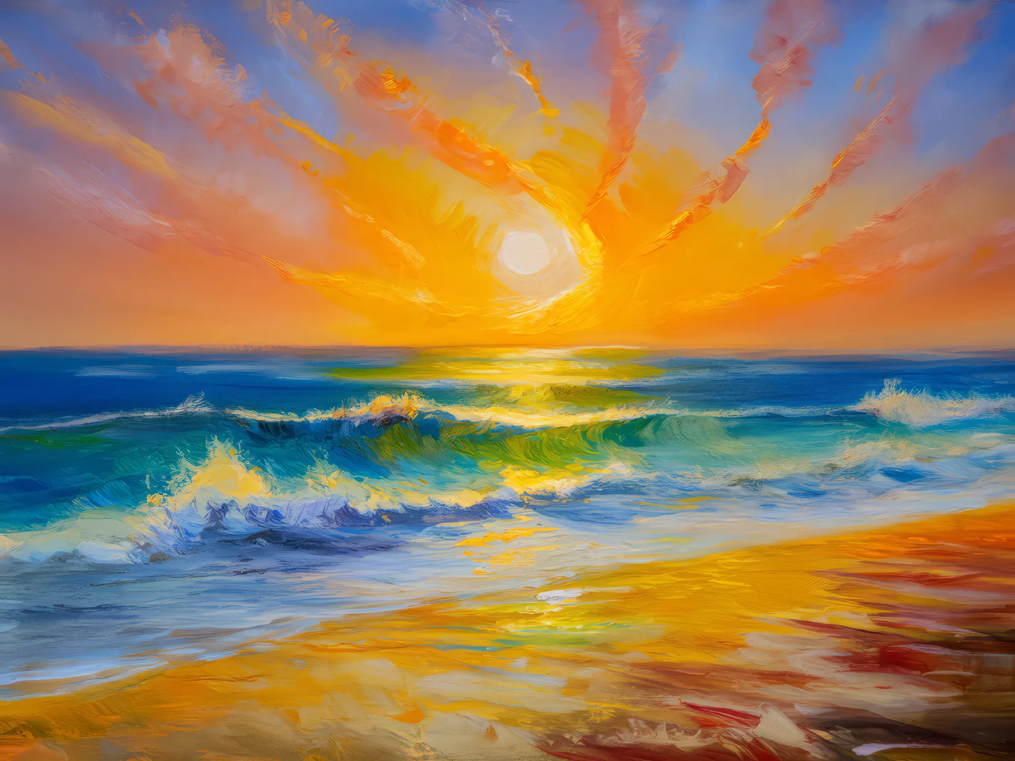 Sunset Mirage over Ocean DesertBy Emma Mickelberg / August 20, 2020 As the sun sets, a mirage appears over the ocean desert, blending water and sand into one. Painted in 2003. View ‘Sunset Mirage over Ocean Desert’ on Society6